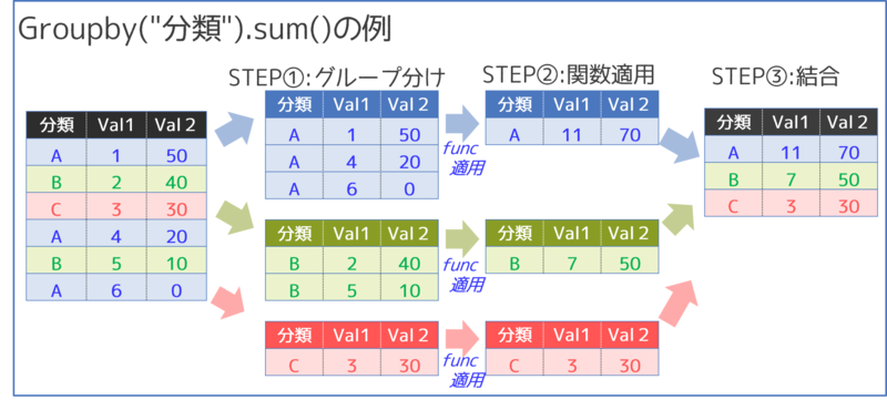 # pandas groupbyメソッドを使用して、データを指定された条件に基づいてグループ化し、各グループに対して指定された関数を適用することで、集計結果を取得します。groupby関数は、データ分析において非常に便利なツールであり、データを効率的に集計することができます。
