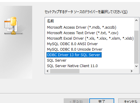 SQL Server接続の構成とODBCドライバーのインストール